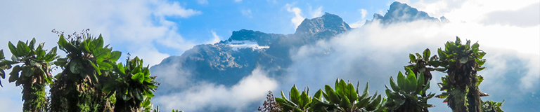 The trek starts from Kilembe 1,450m climbing up through the forest & bamboo zone to sleep at Kalalama Camp then on to Bugata Camp & over Bamwanjara Pass, down through a beautiful valley before ascending through Scott Elliot Pass to Margherita Camp at 4,485m from where you set off early morning 3am to climb Margherita Peak. Tough but truly.